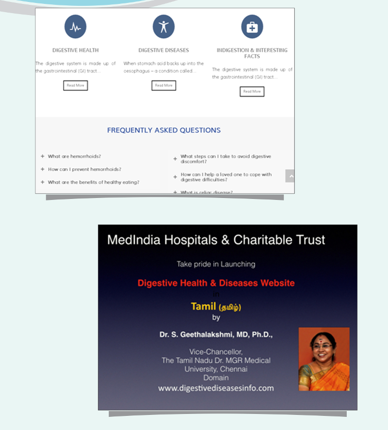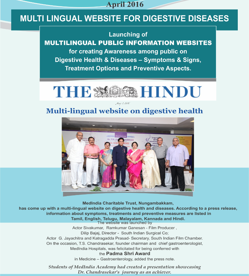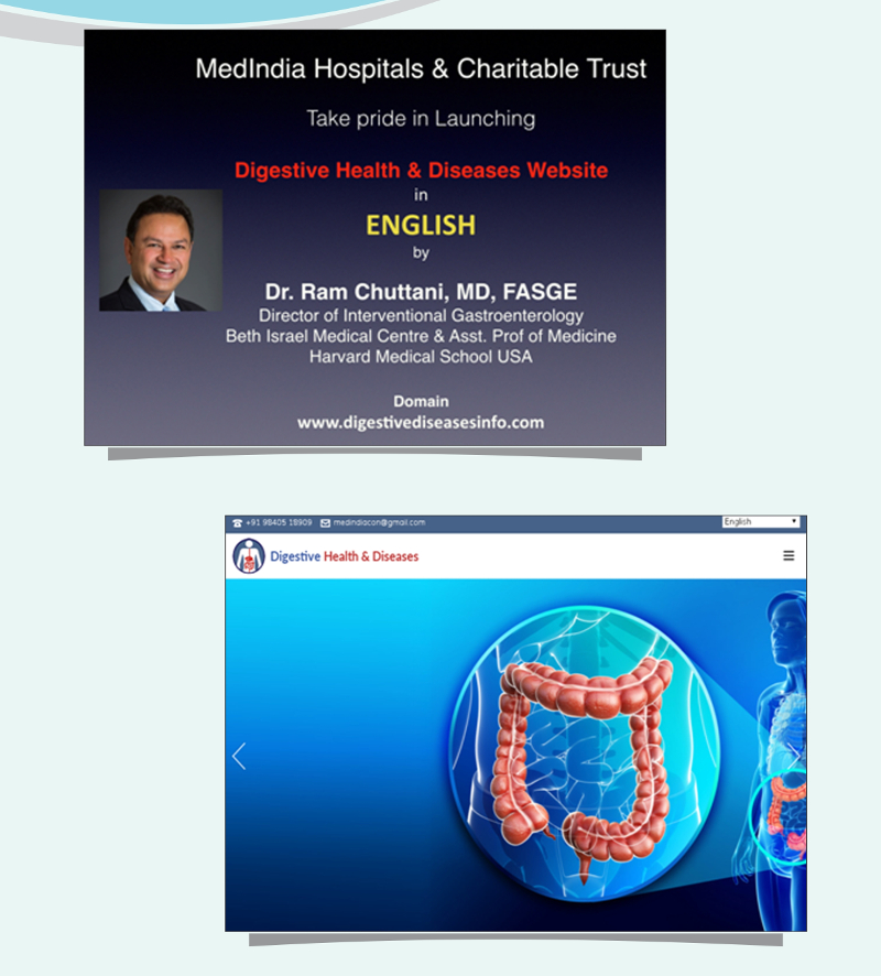 MedIndia Hospitals has launched on 23rd April 2016 in a FIRST OF ITS KIND INITIATIVE IN INDIA, a Multi-Lingual Public Information Websites on Digestive Health & Diseases.